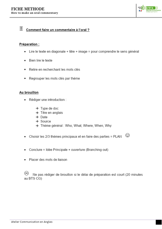 2 - Fiche Méthode Faire Un Commentaire À L'Oral