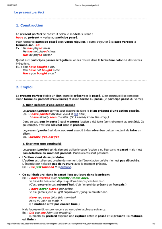 3- Cours Le Present Perfect